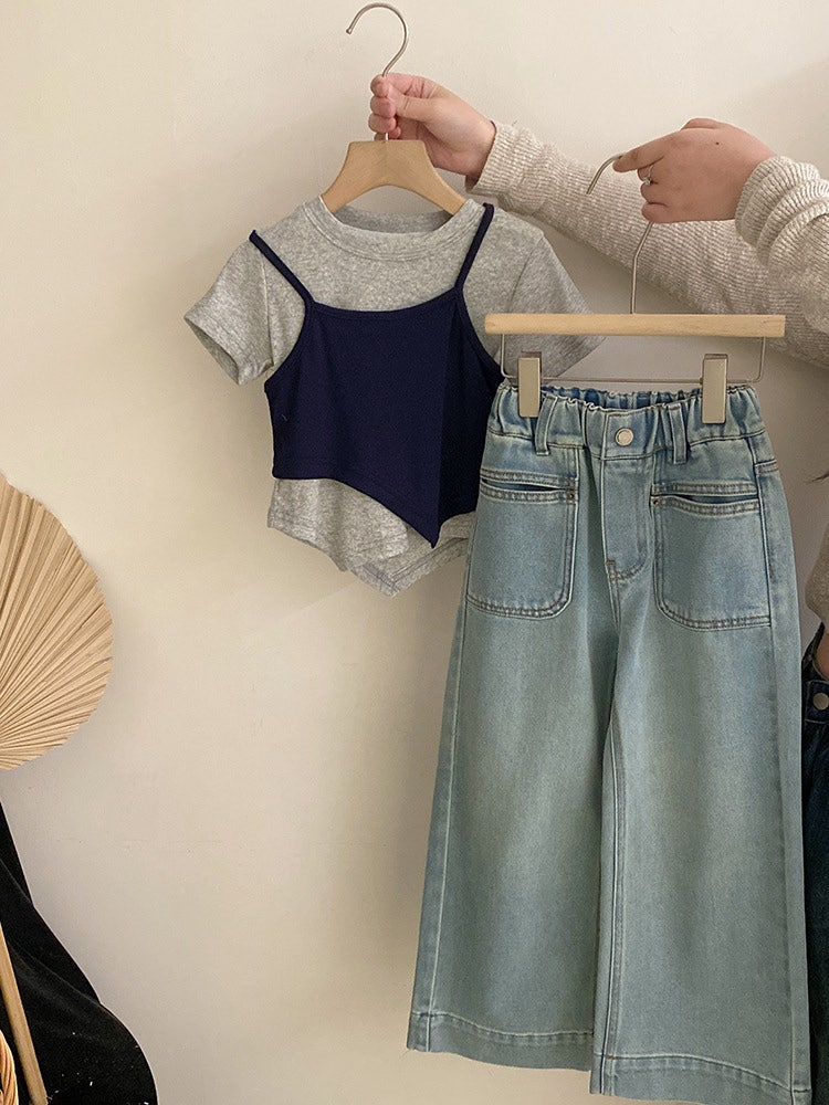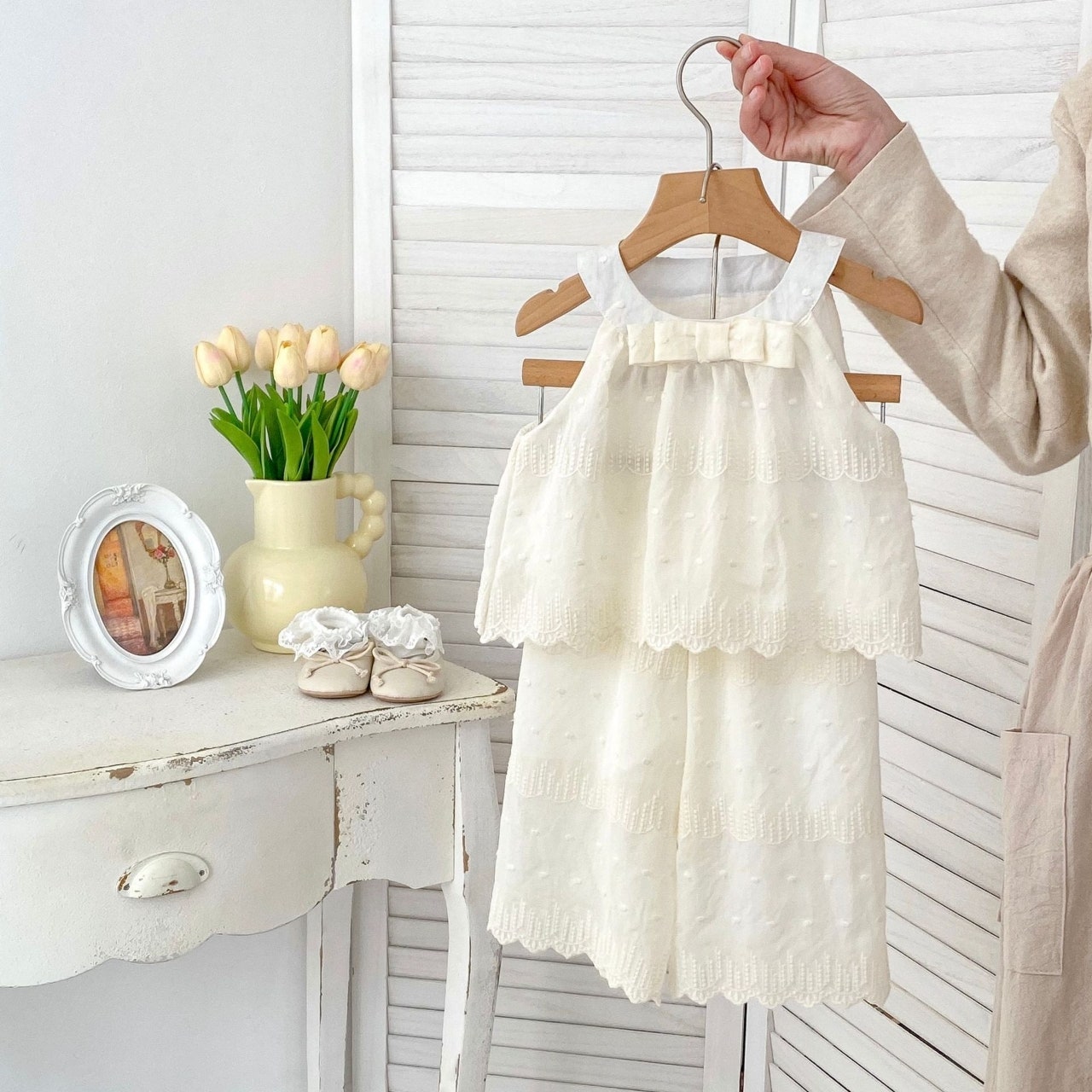 - [수입] 하늘리본티펀칭바지세트 (바로배송)