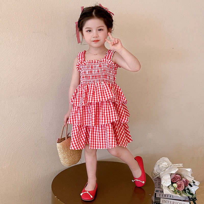- [수입] 레드체크소녀원피스 (바로배송)