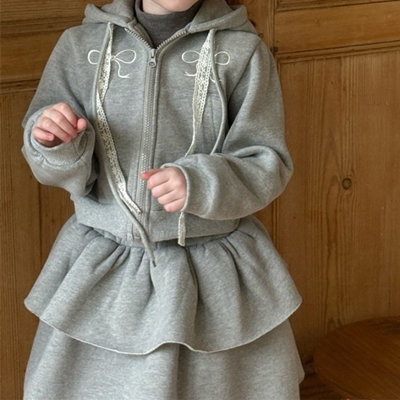 - 앙뜨제이.리본후드집업프릴스커트상하세트