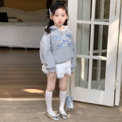 - [빠른수입] 리본그레이후드티치마셋