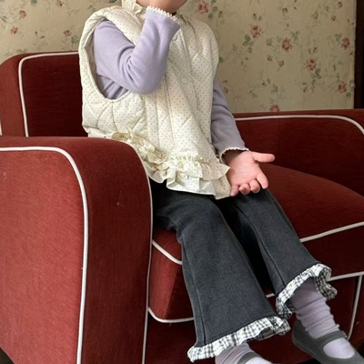 아이아이.겨울)체크프릴와이드팬츠